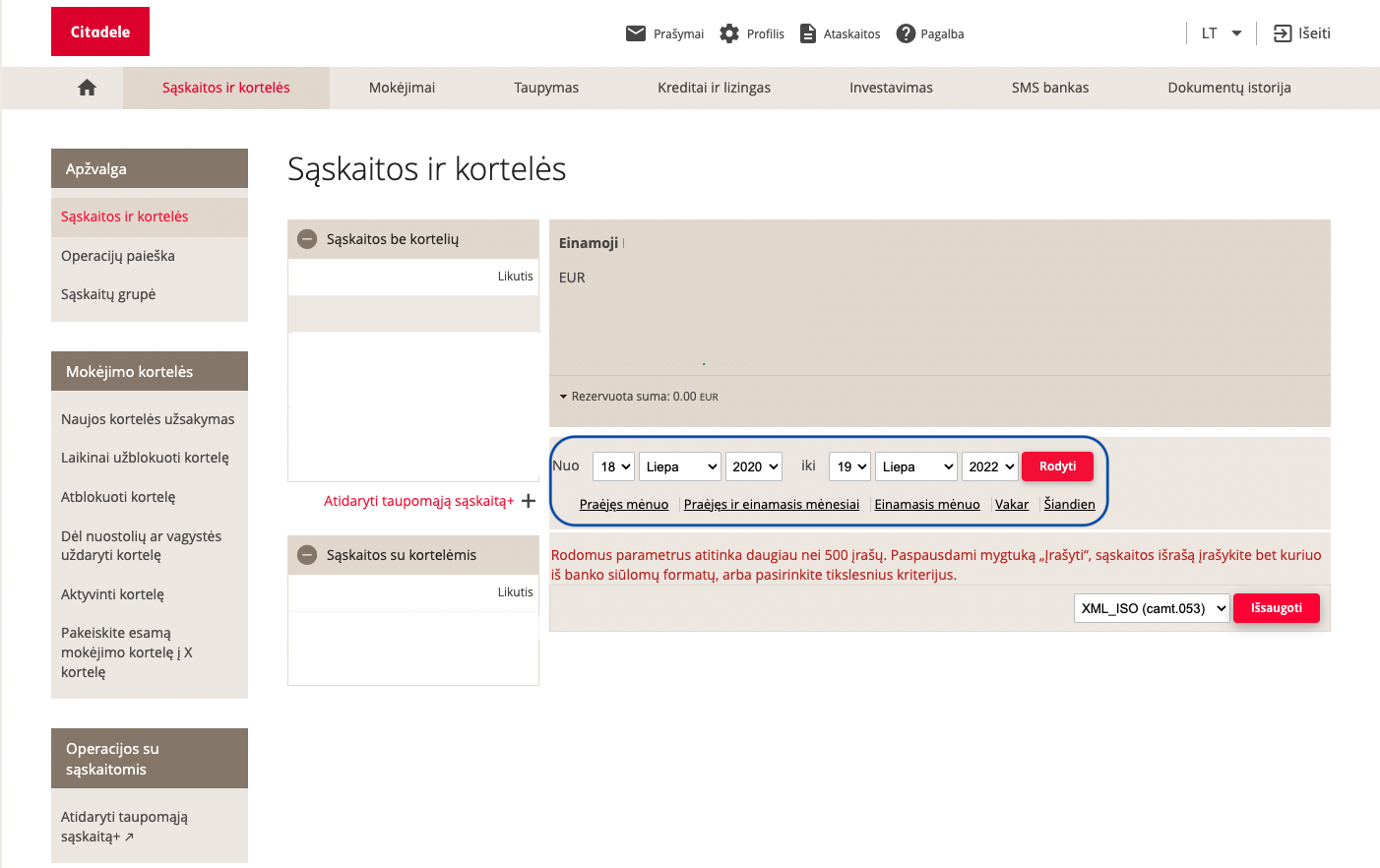 Kaip ištraukti išrašą iš Citadele verslo paskyros?