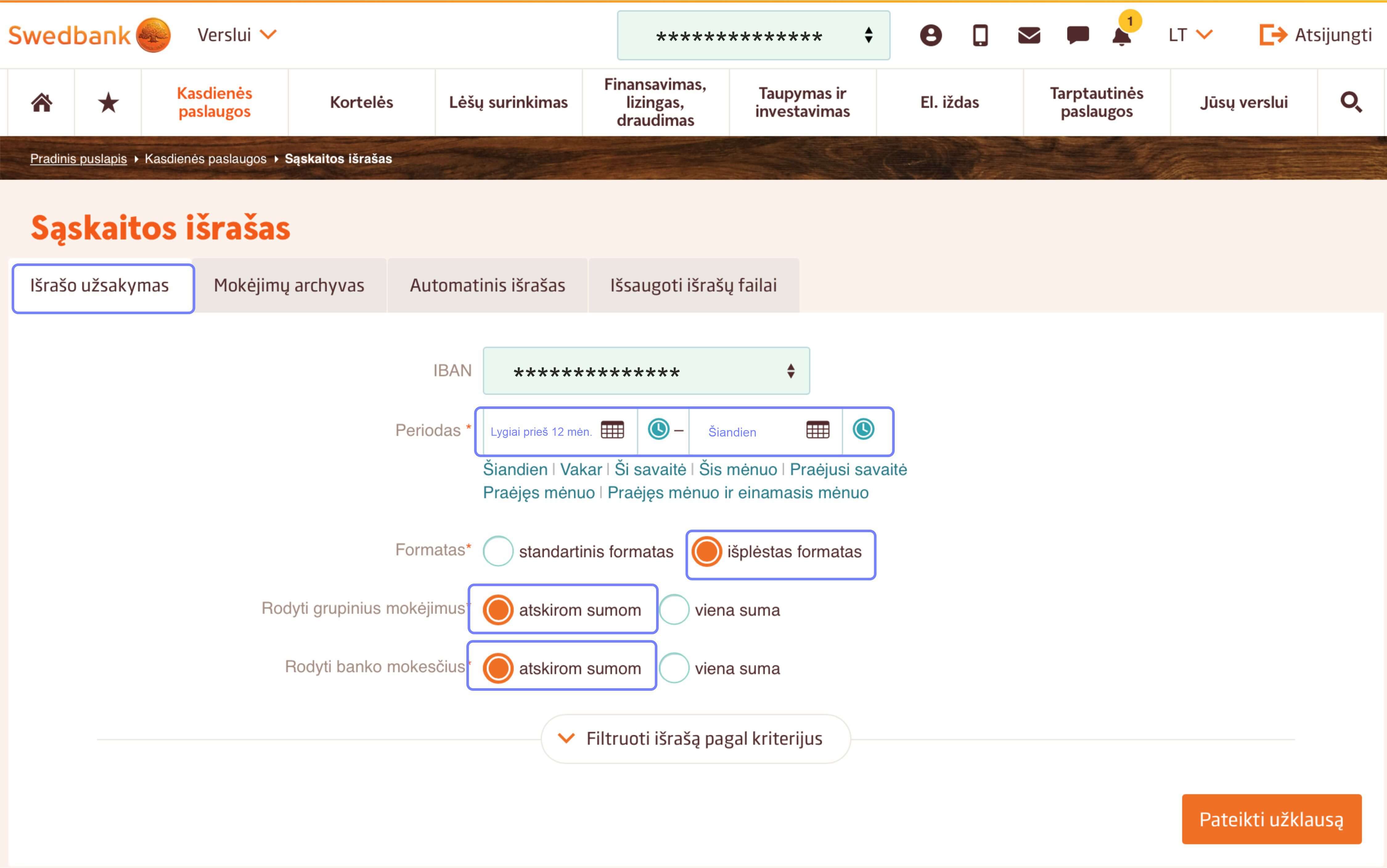 Pasinaudokite mūsų trumpa instrukcija ir ištraukite verslo sąskaitos išrašą greitai ir patogiai.