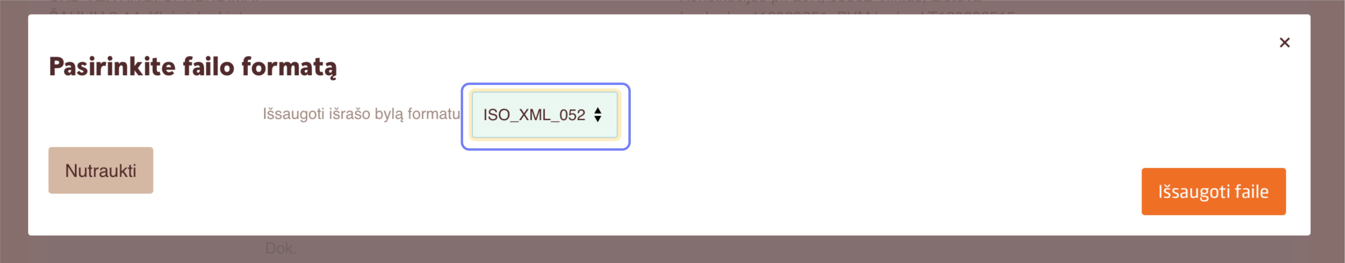 6. Pasirinkite formatą ISO_XML_052